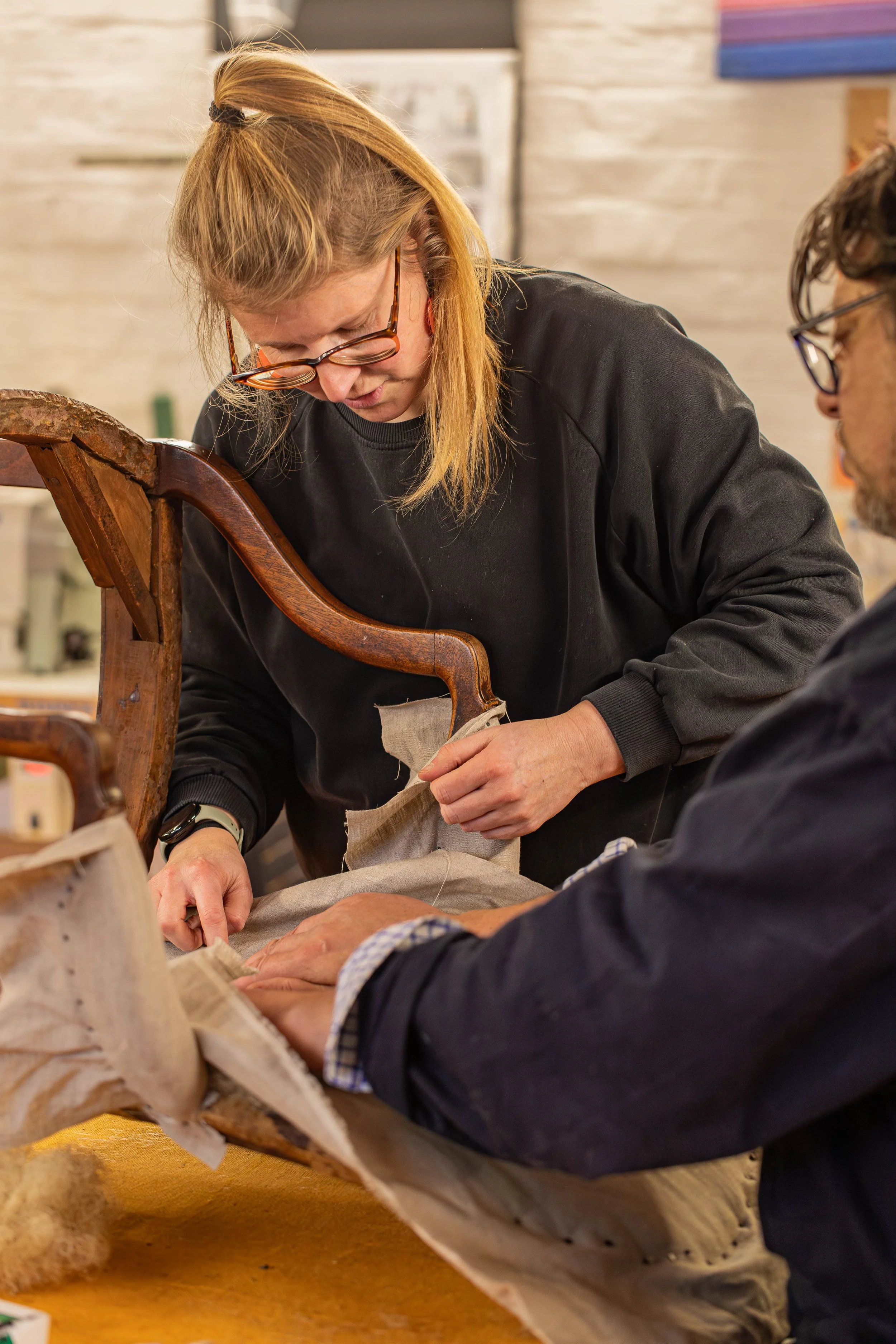Although now primarily focused on education, Gareth continues to take on a small number of select commissions, specialising in decorative arts from 1840 to 1950. Known for his clear and engaging teaching style, he adapts his approach to suit each individual, creating a relaxed yet informative learning environment. His depth of knowledge, combined with a genuine passion for sharing traditional skills, has made him a highly respected figure within the field of upholstery.