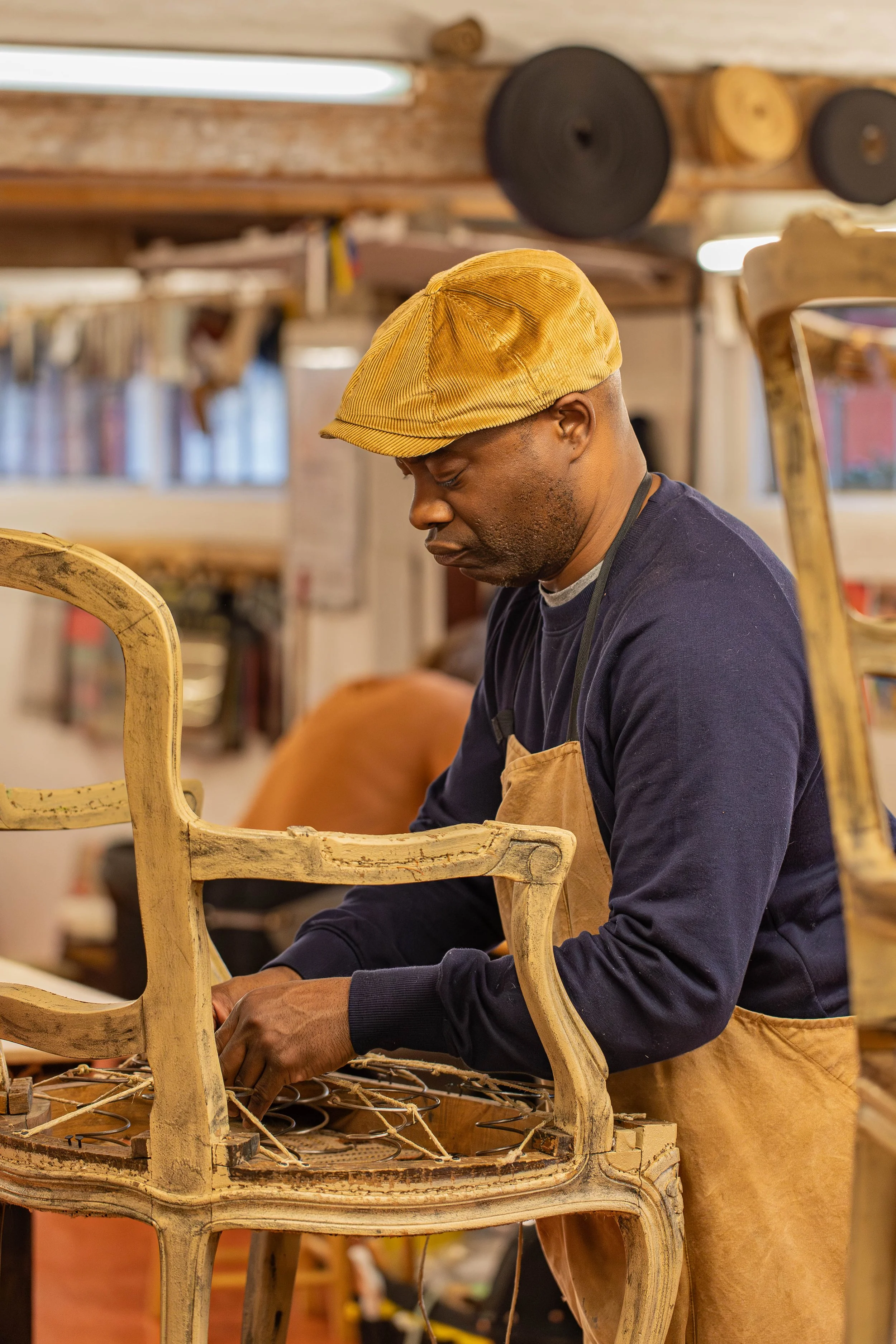 In 2004, Gareth established his own upholstery business, undertaking commissions for high-end interior designers, bespoke furniture makers, private collectors, antique dealers, embassies, and museums. His work is known for its authenticity, precision, and respect for traditional methods.